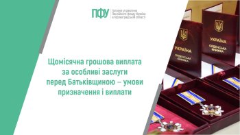 Законом України від 27.07.2022 № 2454-IX “Про щомісячну грошову виплату деяким категоріям громадян” та Постановою Кабінету Міністрів України від 20.01.2023 № 79 “Деякі питання призначення і виплати щомісячної грошової виплати деяким категоріям громадян з числа осіб, які мають особливі заслуги перед Батьківщиною і брали безпосередню участь у захисті суверенітету та територіальної цілісності України, та членам сімей загиблих (померлих) громадян з числа осіб, які мають особливі заслуги перед Батьківщиною”...