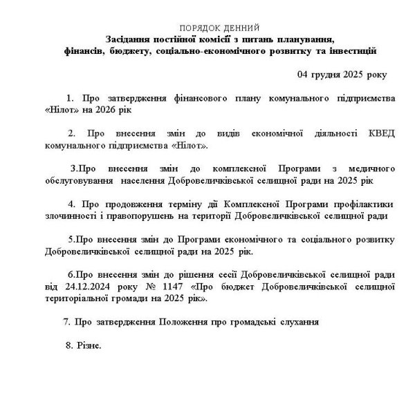 ПРОТОКОЛ № 14 засідання постійної комісії селищної ради з питань планування, фінансів, бюджету, соціально-економічного розвитку та інвестицій - protokol-14-vd-04_12_2025.docx