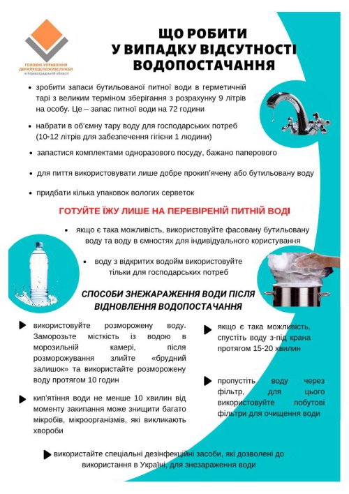 Бережіть себе і своє здоров’я! Будьте впевненими у якості питної води, яку ви споживаєте. Вимагайте від підприємств, що здійснюють постачання питної води інформації щодо її якості та безпечності.
