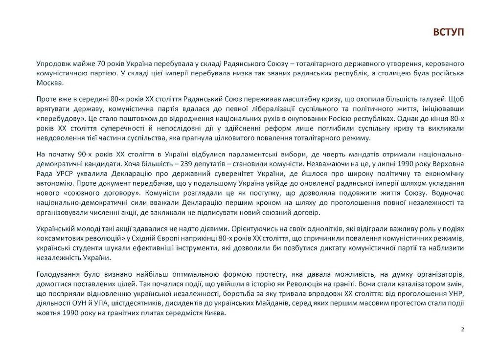 02-16 жовтня 2025 року в Україні відзначається 35-річчя Революції на граніті. Це масова студентська акція громадянської непокори, спрямована на захист національних інтересів Українського народу, яка заклала традиції демократичних форм протесту, що спиралися на ідею ненасильницького спротиву та передбачали високий ступень самоорганізації. Жовтневі події 1990 року створили передумови для ухвалення Акта проголошення незалежності України 24 серпня 1991 року, його підтримки на референдумі 01 грудня 1991 року та розпаду СРСР, а також довели важливість і результативність боротьби за демократичні цінності та свободи.