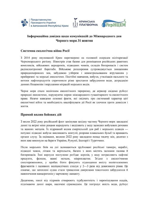 Інформаційна довідка "Війна створює загрозу для морських екосистем вплив російської агресії проти України на стан Чорного моря" - dodatok-2.pdf (Переглянути онлайн)