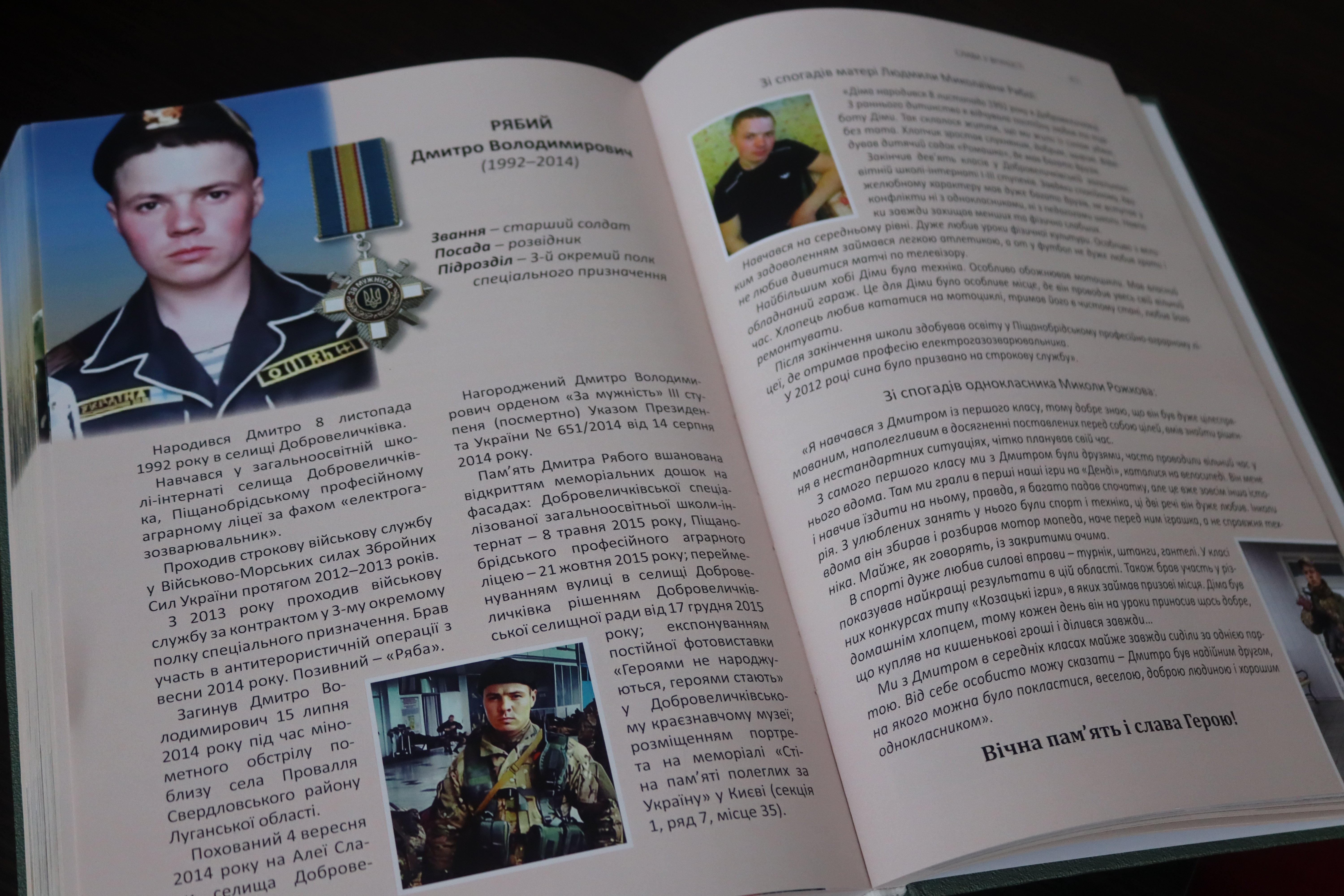 А також примірник книги вручено Катерині Ковальській, директору КЗ «Добровеличківський ліцей «Інтелект», де навчався наш Захисник Дмитро Рябий.