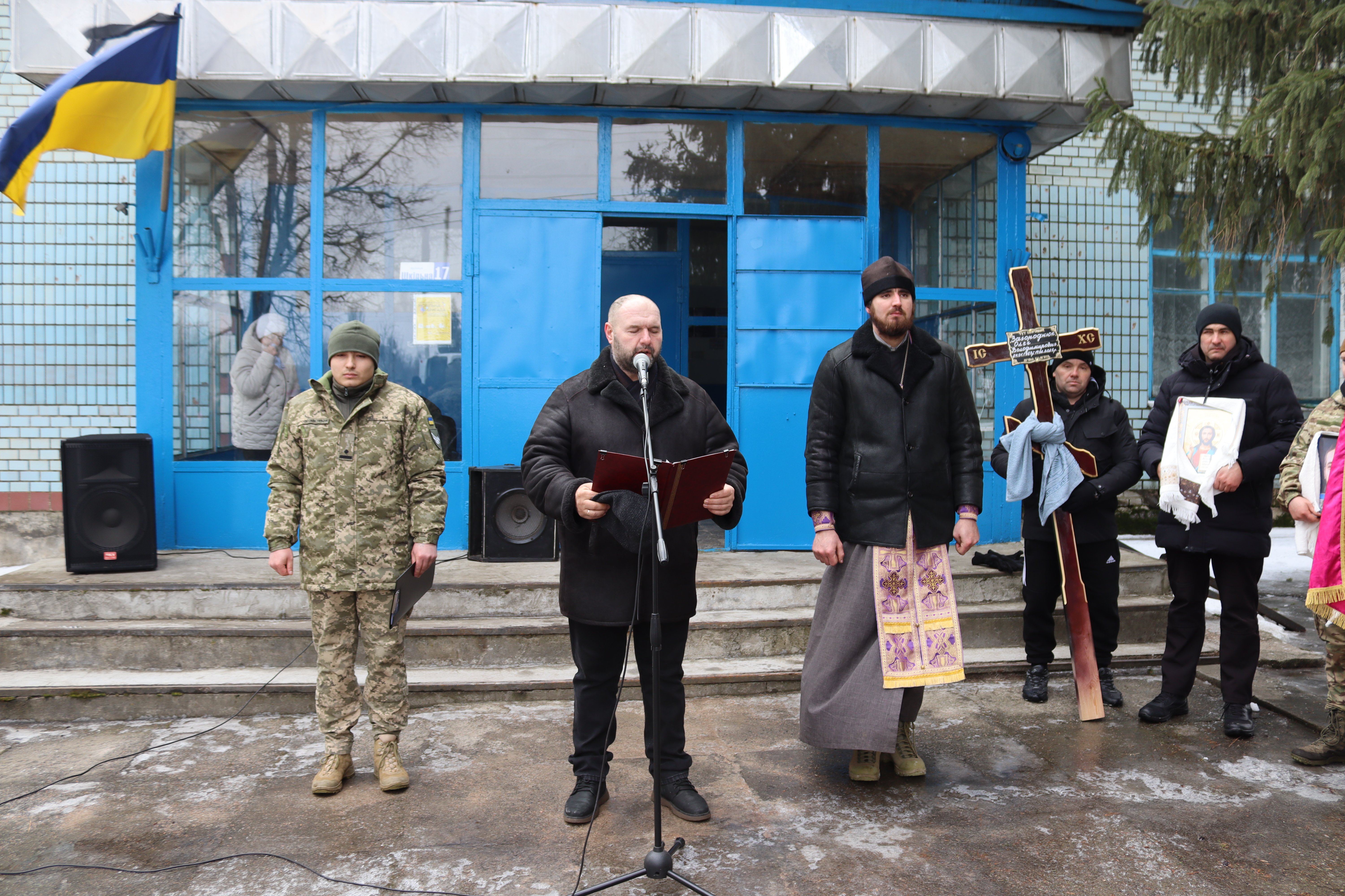 Зі словами співчуття до родини та близьких загиблого звернувся селищний голова Володимир Осієвський: