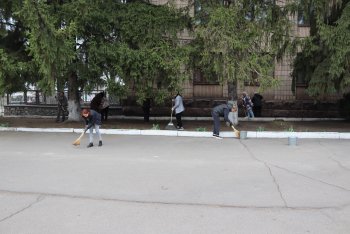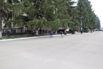 Роботи по очищенню проводилися на центральній площі та прилеглої території біля адміністративної будівлі селищної ради.