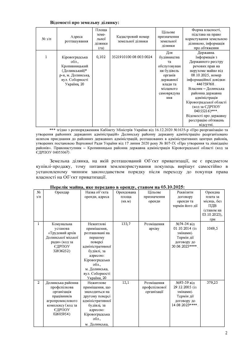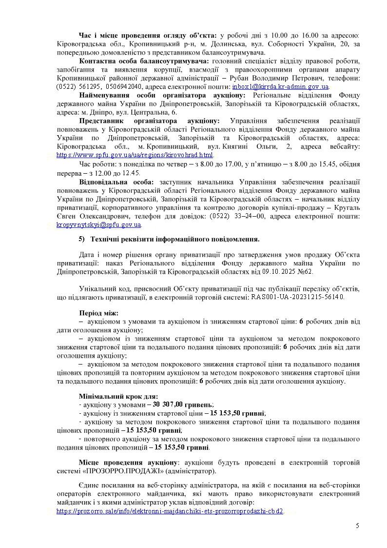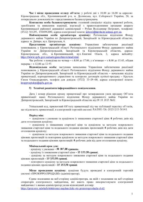 » Інформаційне повідомлення про продаж об’єкта малої приватизації