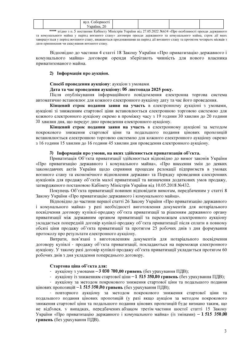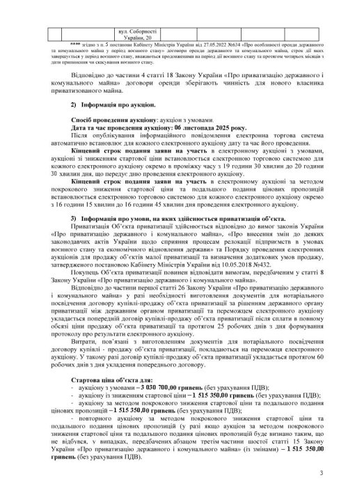 Інформаційне повідомлення про продаж об’єкта малої приватизації
