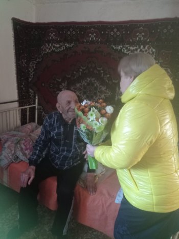 Від селищної ради обом ювілярам - Карпенку Володимиру Юхимовичу та Гуманенко Тамілі Іванівні - були вручені квіти та солодкі подарунки.