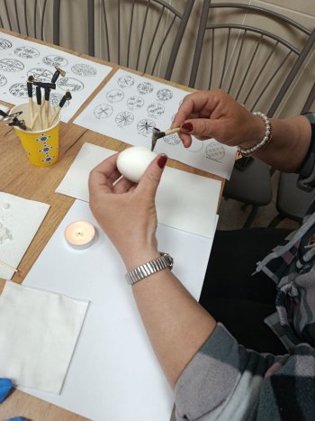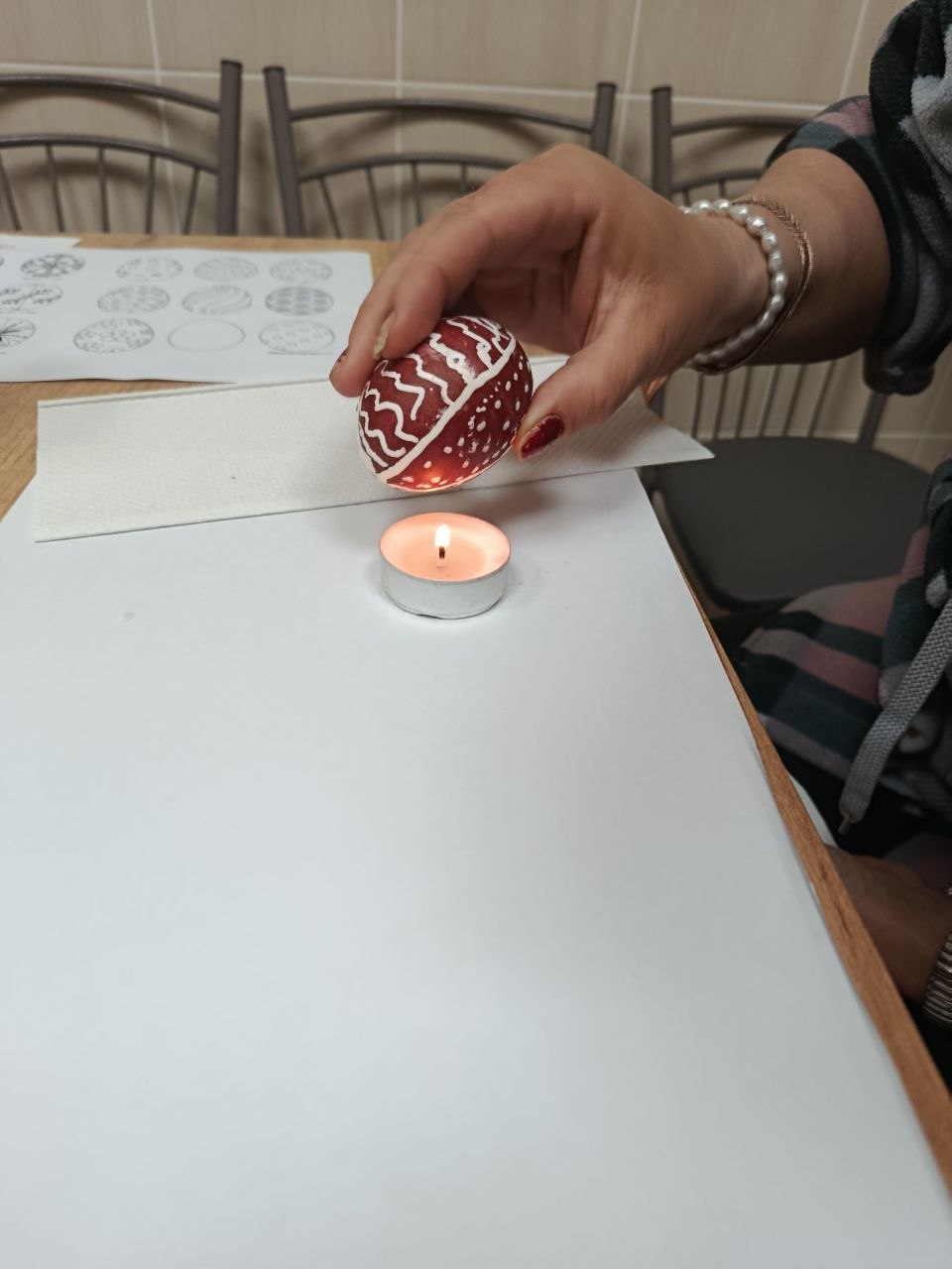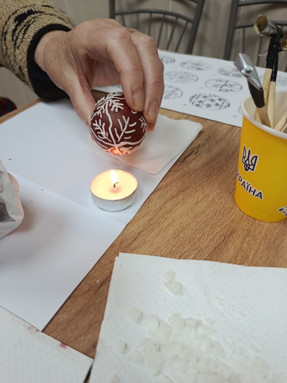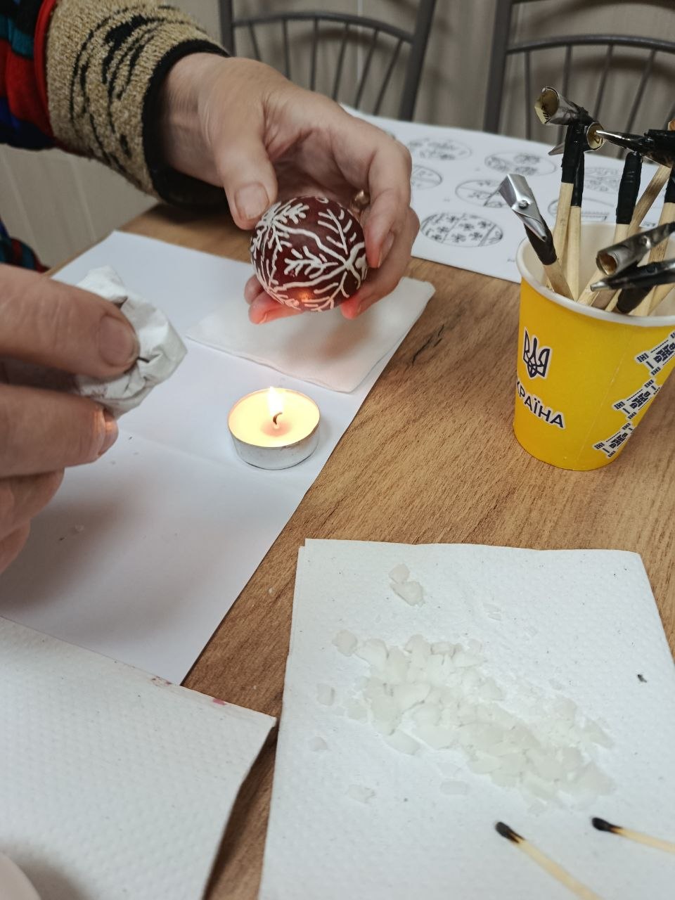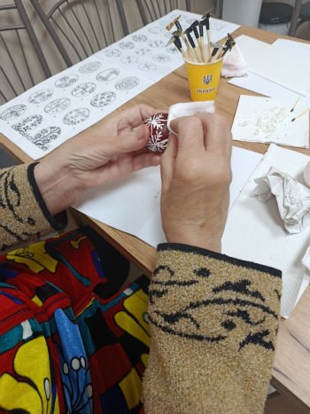 Розписуючи писанки, кожна учасниця вкладала у візерунки свої почуття, надії та мрії. Повільні, уважні рухи, робота з воском і кольорами допомагали знизити рівень стресу, стабілізувати емоційний стан та знайти внутрішню рівновагу.