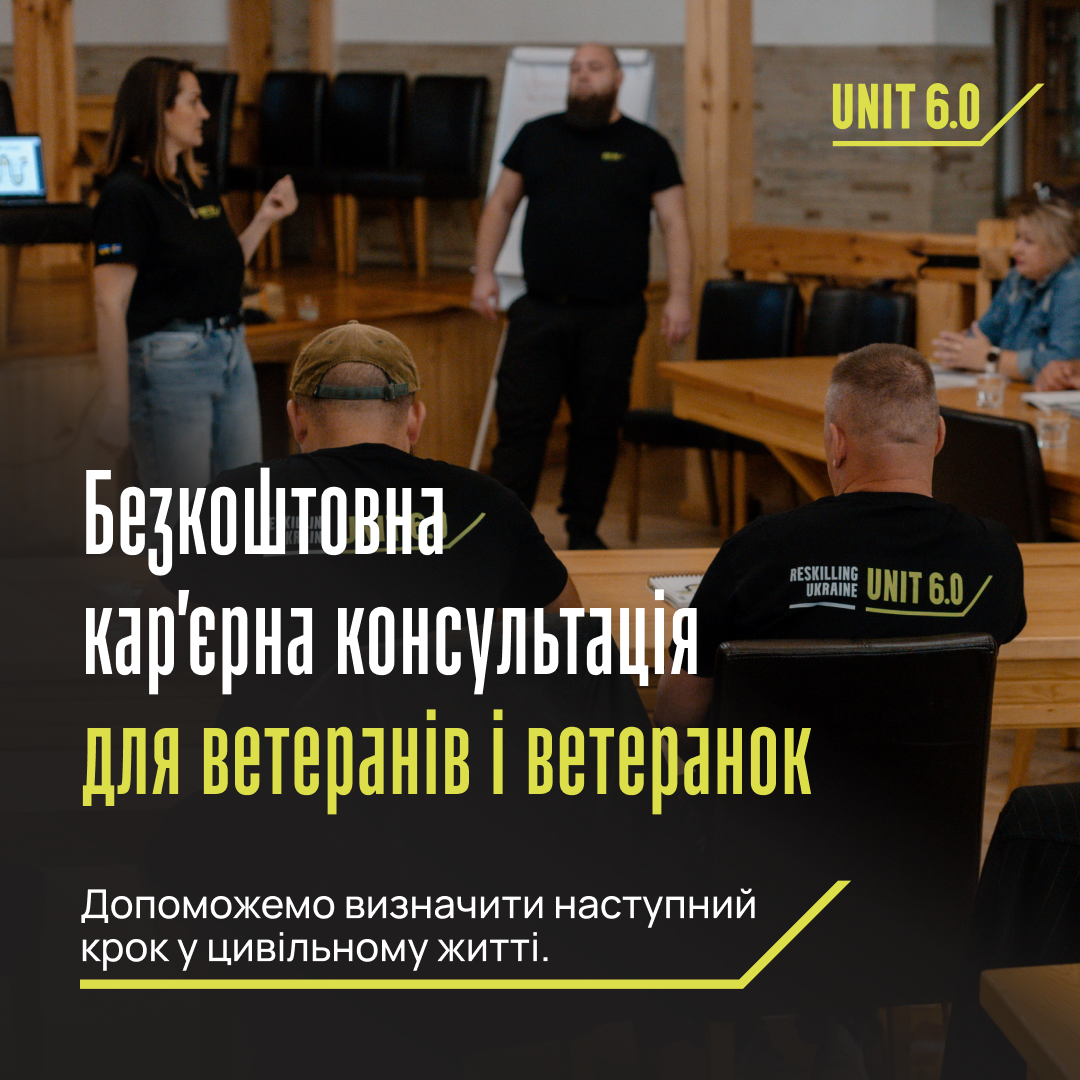 У межах програми UNIT 6.0 проєкту Reskilling Ukraine ветерани можуть отримати безкоштовні кар’єрні консультації за принципом “ветеран до ветерана”.