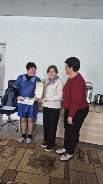 Заступник селищного голови Ірина ВИСОЧАНСЬКА від імені Добровеличківської селищної ради вручила подяки мешканцям і працівникам Притулку за активну участь у будівництві теплиці: Осипову Сергію, Осиповій Любові, Шовенко Ользі та Мажутовій Оксані, подякувавши їм за небайдужість, згуртованість і спільну працю.