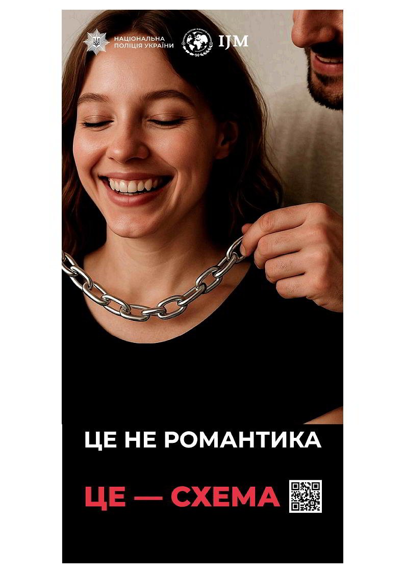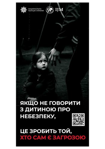 У рамках Меморандуму укладеного між Національною поліцією України та фондом «International Justice Mission» (далі - IJM) Департаментом міграційної поліції (далі - ДМП), Департаментом комунікації (далі - ДК) Національної поліції України та IJM підготовлено просвітницькі матеріали, спрямовані на підвищення обізнаності населення щодо проблематики торгівлі людьми та експлуатації дітей.